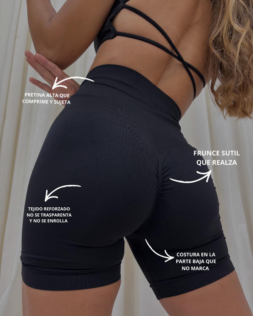 Confeccionada en tejido seamless, liviano y sin costuras que se ajusta al cuerpo de forma muy cómoda. Su textura es suave y el frunce es bastante discreto. Lo más destacable es su pretina súper alta y contenedora.